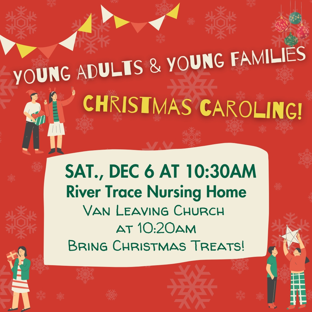 On Saturday, December 6, we are going to bring Christmas cheer to the River Trace Nursing & Rehab Center in Washington. Please, bring soft Christmas treats (cookies, fudge, muffins, etc) and meet us at the church by 10:20am if you want to ride the church van. Christmas sweaters, Santa hats, antlers, and red noses are all welcomed!